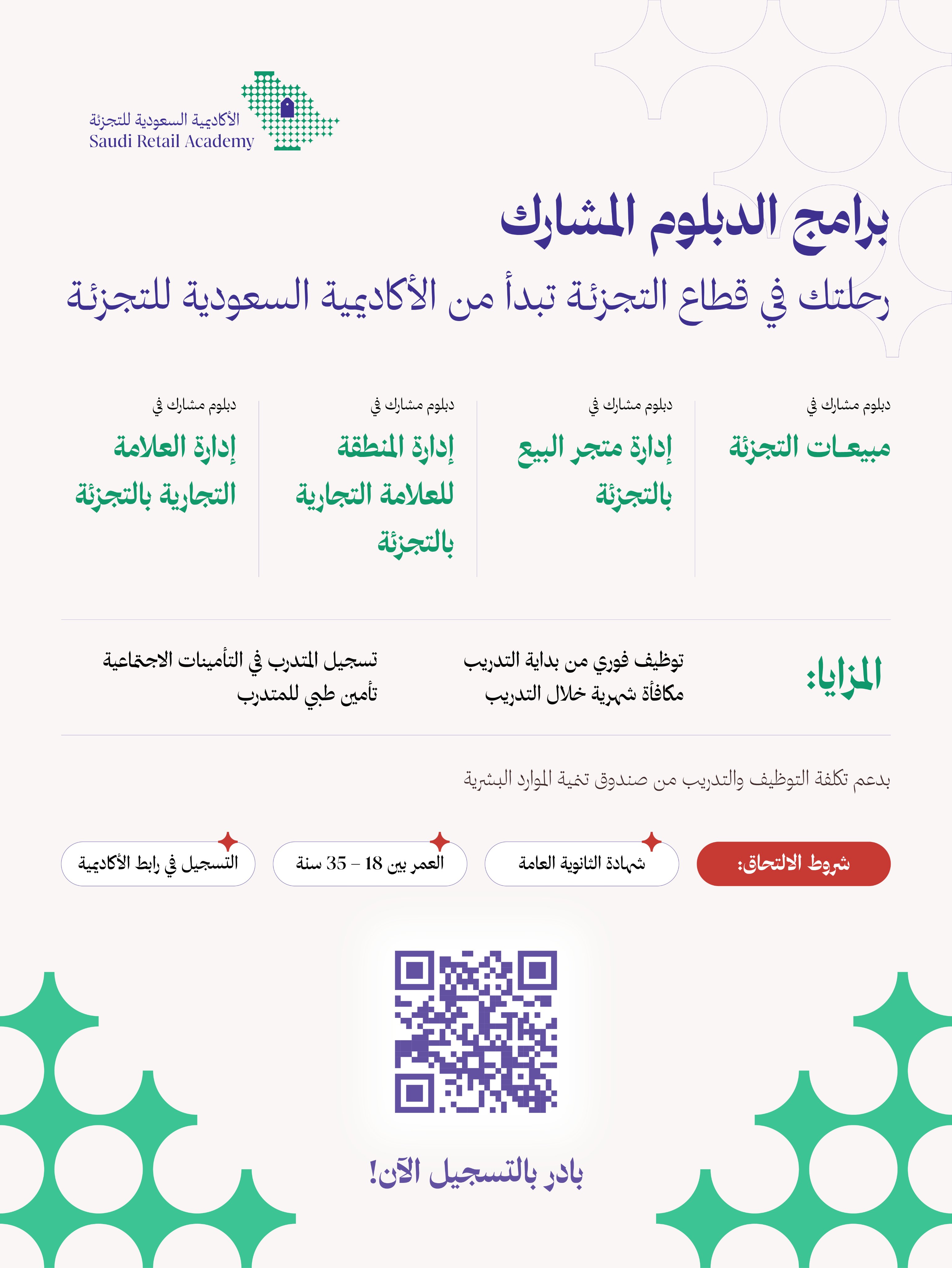 الأكاديمية السعودية للتجزئة تفتح باب التسجيل لبرامج الدبلوم المنتهي بالتوظيف