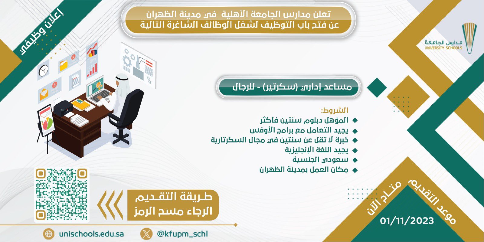 مدارس جامعة الملك فهد للبترول والمعادنأعلنت مدارس جامعة الملك فهد للبترول والمعادن بالظهران توفر وظائف شاغرة (رجال / نساء) تعليمية في مختلف التخصصات، واشترطت المدارس أن يكون المتقدم أو المتقدمة سعودي الجنسية، وذلك وفقاً للتفاصيل الموضحة أدناه.